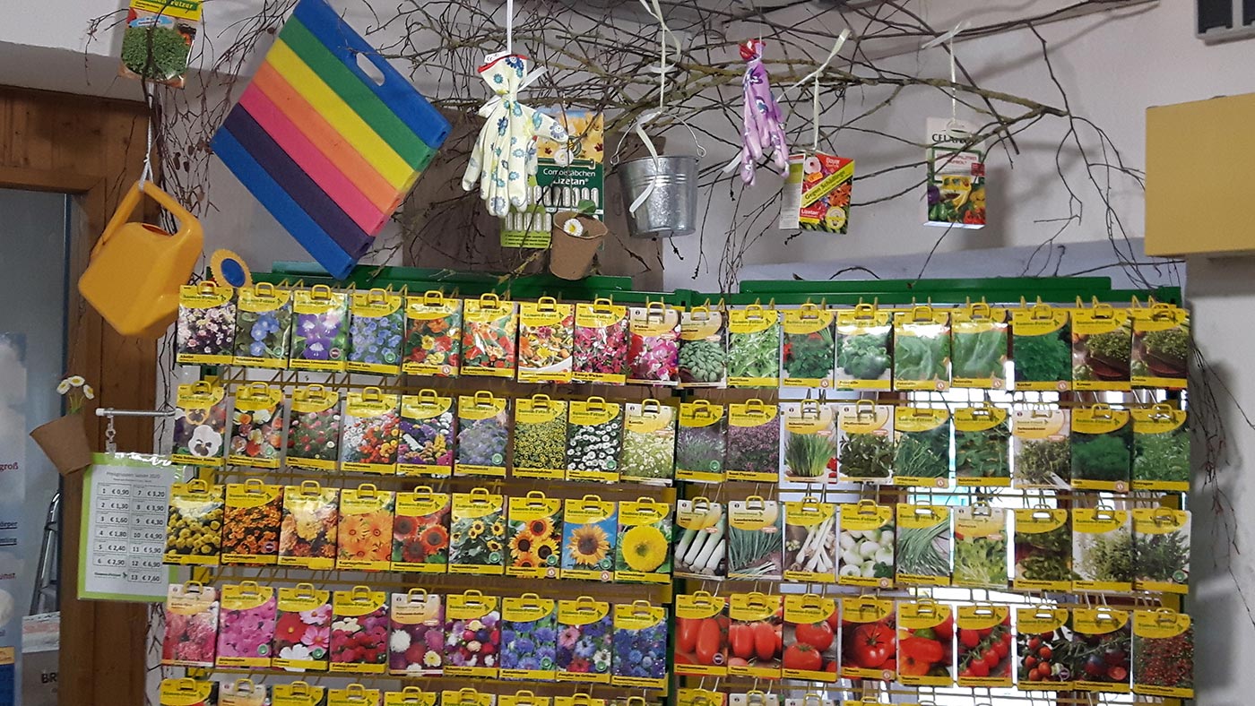 Sämereien, Steckzwiebel, Blumen-, Kultur- und Pflanzerde, Spezial- und Gartendünger, Schadnagerbekämpfungsmittel und Pflanzenschutzmittel in Kleinpackungen komplettieren unser Angebot.